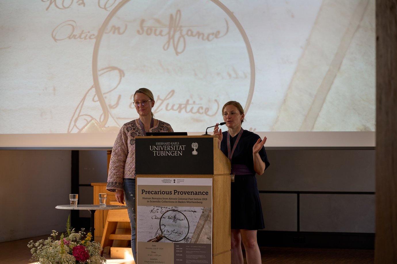 On Monday, 8 July, the final conference of the joint project "Precarious Provenance – Human Remains from Africa's Colonial Past before 1919 in Scientific Collections of Baden-Württemberg" took place in the Pfleghofsaal at the University of Tübingen. The project, which has been conducted under the leadership of the MUT since 1 September 2021, aimed at determining the origins and clarifying the history of origin of the ancestral human remains in the four scientific collections.